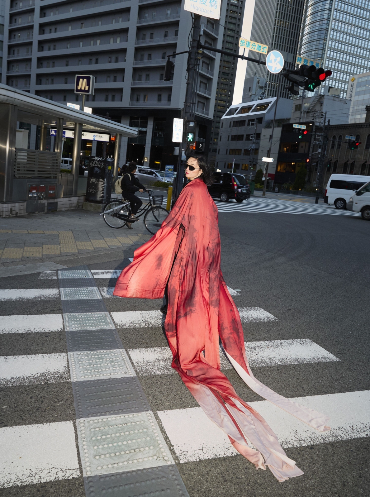 Artystka zaprosiła do współpracy 12 kobiet z Polski i Japonii, aby odwzorować w swoich kreacjach ich osobiste historie. W efekcie powstało dwanaście unikalnych kreacji, inspirowanych jūnihitoe (dosłownie „dwanaście warstw”), tradycyjnym strojem dworskim z okresu Heian. Osoby starsze, transpłciowe i społecznie wykluczone, które rzadko reprezentowane są w świecie mody, zyskują przestrzeń ekspresji i symboliczną okazję do zabrania głosu. Osobiste doświadczenia uczestniczek, ukryte w tkaninie, układają się w wielogłosową narrację o tym, co widzialne i niewidoczne – zarówno w modzie, jak i kulturze. Zapisu fotograficznego tych doświadczeń dokonuje fotografka Zuza Krajewska. W serii portretów wykonanych na ulicach Osaki moda zostaje zderzona z kontekstem codzienności, zadając pytanie o widoczność we współczesnej kulturze.