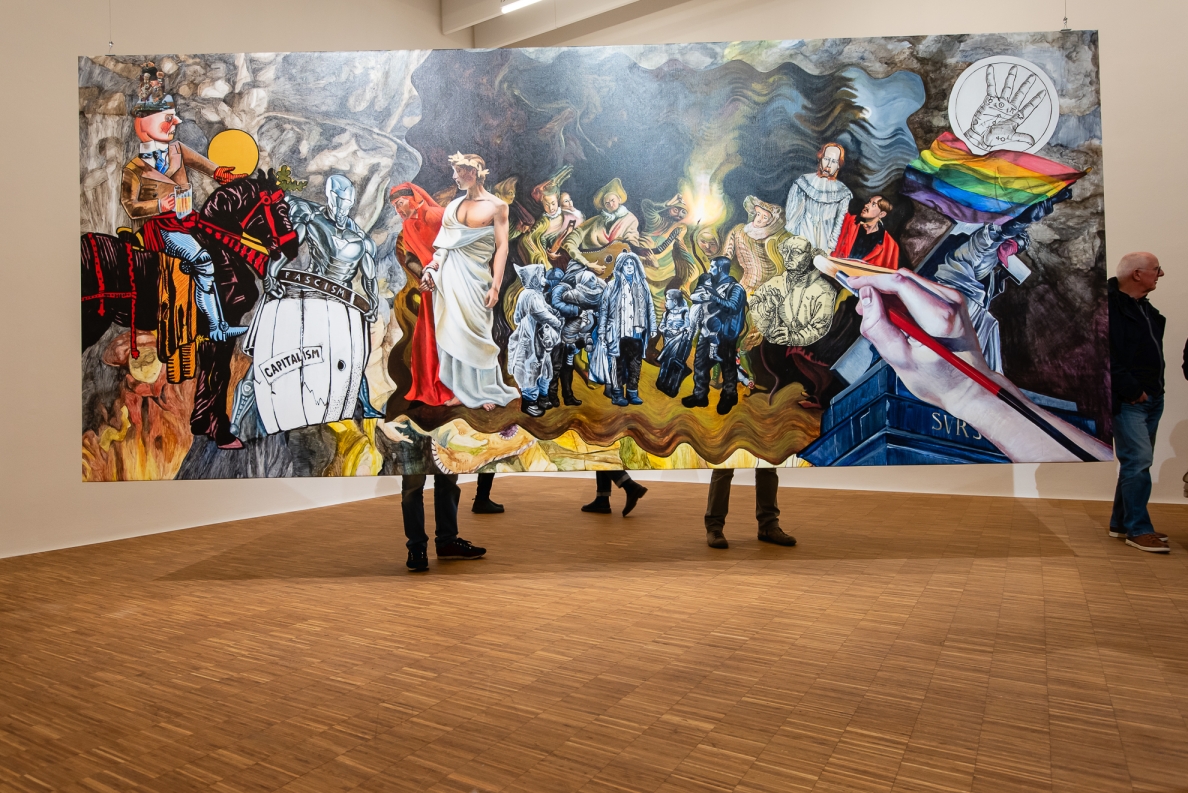 W centrum austriackiej wystawy znajduje się „Sun” („Słońce”) – dzieło, które podejmuje estetyczne i polityczne aspekty realizmu magicznego jako narzędzia przetrwania wobec przemocy i systemowego wymazywania. Narrację tworzy barwna obsada postaci: rewolucjonistka wprost z komunistycznej propagandy w pozie przypominającej Maga z Tarota, Goethe stanowiący przeciwwagę dla reakcyjnego romantyzmu oraz trujące rośliny, historycznie wykorzystywane w buntach przeciw feudalnym panom.